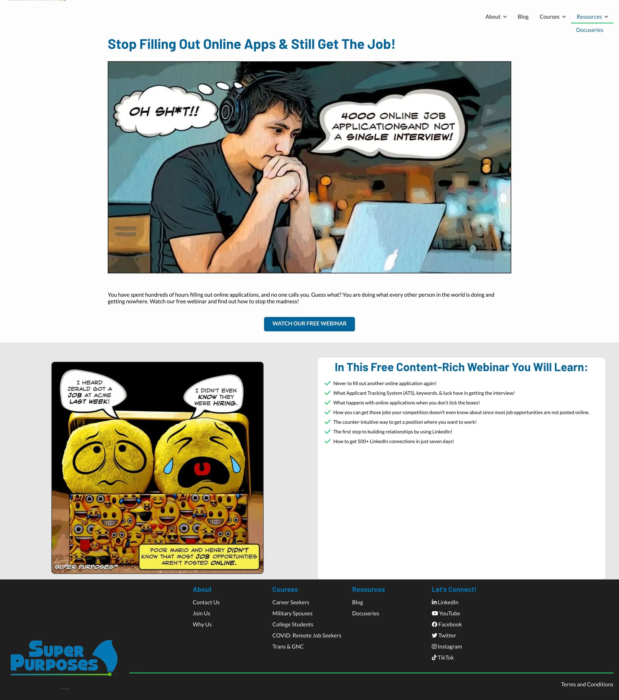 Super Purposes is a career coaching online platform that provides step-by-step guided courses to individuals looking to land a dream job. Unlike other online courses that target individuals based on whom they want to become, Super Purposes builds an emotional connection with clients by aiming at who they already are thus providing them with a detailed strategy as to how to achieve their career goals.